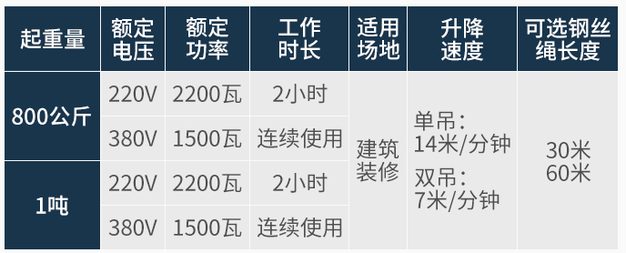 此产品体积小、重量轻、小巧操作方便,采用380V/220V电压,适用于装潢、吊运作业、安装设备、搬家公司、工厂、车间、轻工、重工、维修、仓库、物流等;
