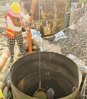 人工挖孔桩是公路、民用建筑施工中常用的施工措施,它是利用人工挖掘的方法挖出一定深度的深井,并向内放置上钢筋笼,再建筑混凝土变成坚硬结实的桩,用来承受整个建筑物的重量,桩基施工中有在孔下作业的人员,也有在孔上作业的人员,在井外的施工人员负责操控室外香蕉视频免费看污,让香蕉视频免费看污把孔下作业人员铲出来的土吊装到孔外。